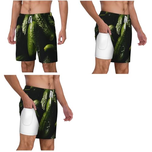 • 2-In-1 Compression Liner:The Mens Swim Trunks With Compression Liner Feature A 2-In-1 Design,Is tender And Breathable And Will Improve Your Wearing Experience. Men'S Swim Shorts Not Only Provide Good Support So That You Don'T Feel Tight, But Also Prevent Embarrassment From Sticking To The Skin When The Shorts grab Soaked.
