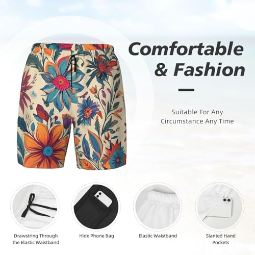 Colorful Boho Floral Print Men chic Functionality Swim Trunks Breathable Beach Shorts Surfing Gym Fishing