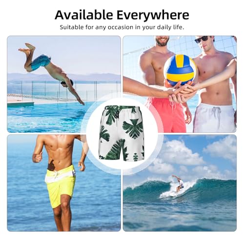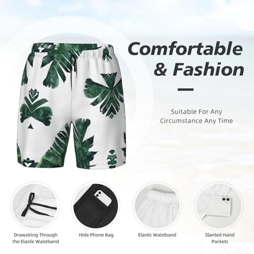 Palm Leavesshort Swim Trunks with Waist Rope and Two Side Pockets Beach Shorts Bathing Suits for Men