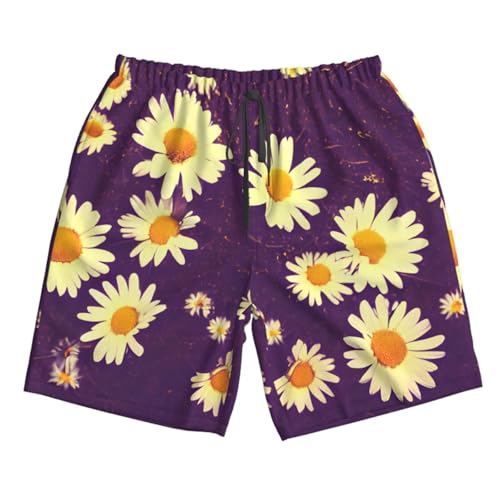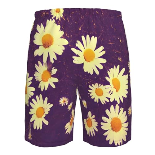 Daisy Purple Flowers Print Mens Casual Shorts Drawstring Summer Beach Stretch Shorts Novelty Swimtrunks 7
