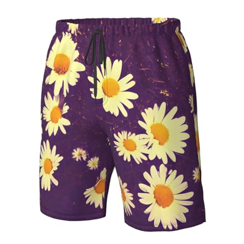 More information about Daisy Purple Flowers Print Mens Casual Shorts Drawstring Summer Beach Stretch Shorts Novelty Swimtrunks