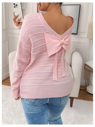 Women's Plus Size Textured Sweater Bow Back Crew Neck Long Sleeve Pullover Knitwear Lightweight Knit Tops 4
