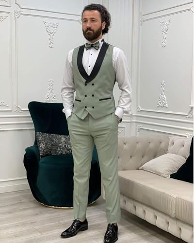 Wemaliyzd Mens Suit 3 Piece Slim Fit Tuxedo for Men Peak Lapel Jacket Double Breasted Waistcoat Pants 4