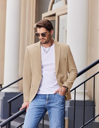 popular ! COOFANDY Mens Sport Coat Slim Fit Casual Blazer One Button Lightweight Business Suit Jacket Khaki, Large