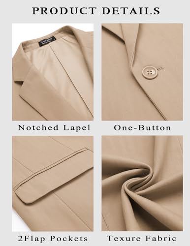COOFANDY Mens Sport Coat Slim Fit Casual Blazer One Button Lightweight Business Suit Jacket Khaki, Large 4