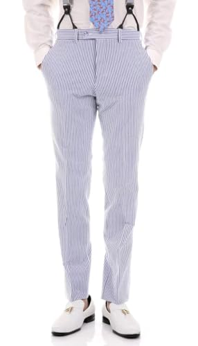 Fabric type: 60% Cotton, 40% PolyesterCare instructions: Dry Clean OnlyOrigin: Imported【Suit Material】Made of high-quality cotton blend fabric, healthy, velvety, lightweight, and breathable. Therefore, light colored suits will be slightly transparent, especially white. It is recommended to pair them with light colored underwear.【Suit Feature】Seersucker suit jacket, notched lapel, slim fit, two button closure, a single left chest pocket, two flap pockets at sides, padded shoulders and flat front pants which help make you more gentlemen.【Applicable Occasions】Men seersucker suit is suitable for beach wedding or other weddings, graduation ceremonies, dates, proms, parties, dinners, dates, celebrations, dances, banquets, holidays and other casual and formal occasions.【How to Choose Size】Please look at our size chart before order. If you are not sure, we strongly suggest you to inquire about size first. You can tell us your height, weight, chest circumference and waist circumference and we will figure out the best size for you. Please ensure that your actual chest circumference is 2-3 inches smaller than the chest circumference of your jacket to have space.【Garment Care】Dry Clean Recommended if Conditions Permit. If you have to hand washed it, please keep the water temperature below 40 degrees Celsius and wash gently. Steam Ironing, hang the suit on the hangers when you are not wearing it. Perfect for everyday use. supreme materials and excellent craftsmanship ensure long-lasting durability.