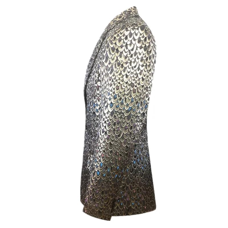 enduring Fish Scale Jacquard Suit Autumn Men's Wedding Ball Party Stage Dress Clothes