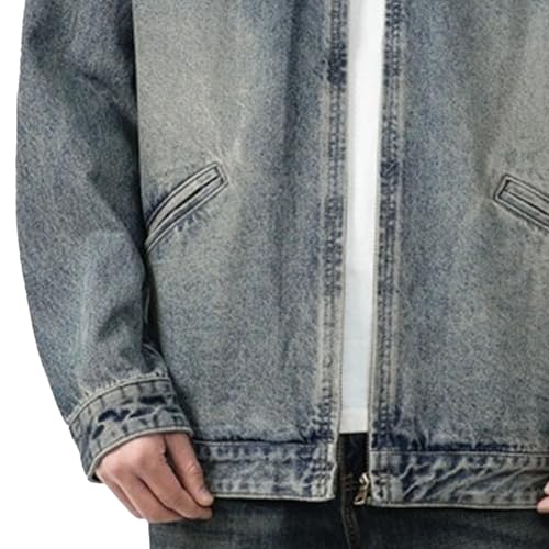 JEShifangjiusu Mens Stand Collar Spring Trendy Coat Moto Biker Zip Up Lightweight Jacket Slim-Fit Distressed Denim Outwear