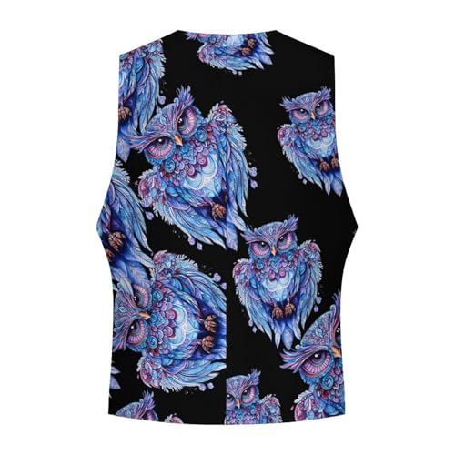 Colorful Owls Men's Suit Vests Business Formal Dress Vest V-Neck Waistcoat for Wedding Casual