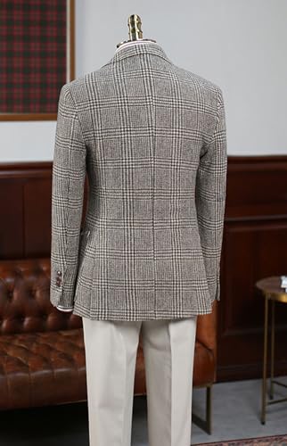 Men's Vintage Plaid Blazer Retro Single Breasted Suit Jacket Casual Sports Coat 4