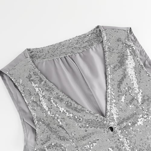 GRAJTCIN Mens Sequin Vest V-Neck Prom Vest Jacket Shiny Party Dress Suit Waistcoat Bowtie Set 6