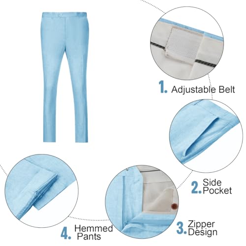 Linen Men’s Suits Slim Fit 3 Piece Blazers Jackets Vest Pants Linen Suit Set for Men Groom Wedding Outfit Light Blue XL 4
