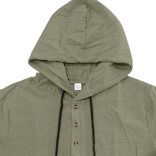 More information about Mens Summer Cotton Linen Hooded Shirts Casual Short Sleeve Button Down Blouses Fashion Lightweight Hoodie with Pocket