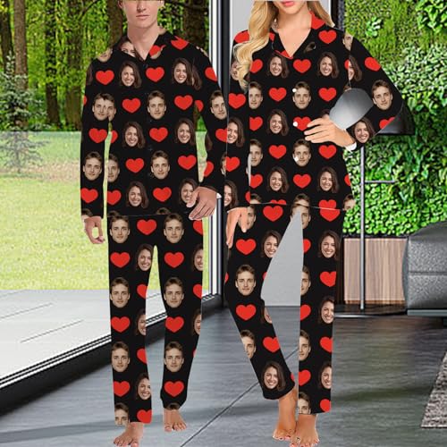 • 🎁[Ideal Pajamas Gifts] - The customized pajamas for women & men contain patterns such as heart, lips and the text "treasure". Face picture pajamas is a impeccable gift for Valentine's Day, Christmas, Birthday, anniversary, and other occasion.