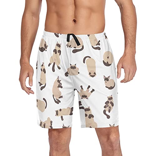 Sleeping Cats Pattern Siamese Colorpoint Cat Men's Pajama Pants Shorts Sleepwear Lounge Pajama Bottoms