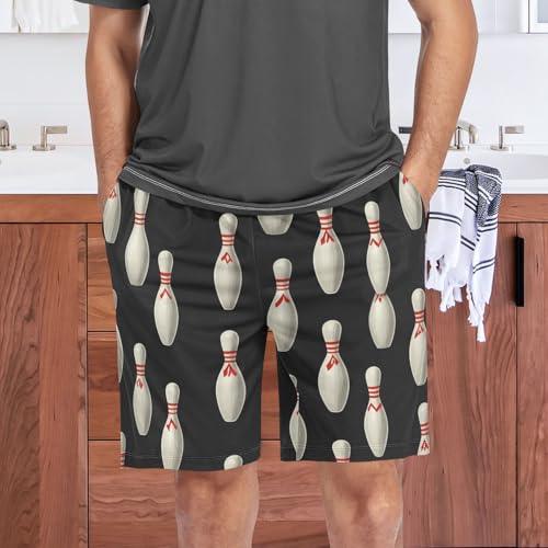 Men's Short Pajama Bottoms Bowling Sport Black Home Casual Sleep Pants