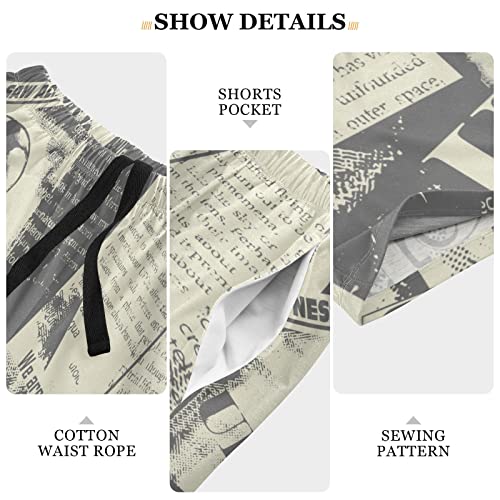 Men Newspaper About Ufos Pajama Shorts Lounge Sleep Shorts Pajama Bottom Sleepwear Shorts with Drawstring and Pockets,S