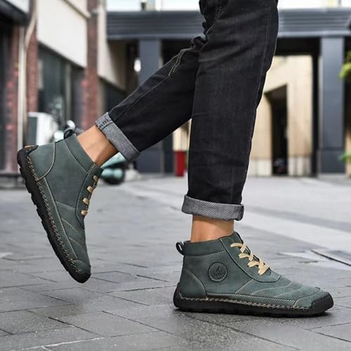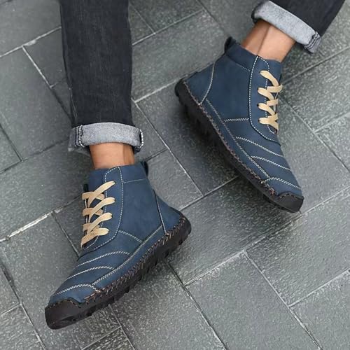 Men's Causal Fashion Sneakers Ankle Chukka Boots Lace-up Round toe Platform Anti-slip Mid top Handmade Walking Driving Shoes