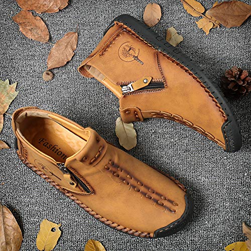More information about Mens Ankle Boots Leather Driving Shoes Casual Loafers Shoes Side Zipper Ankle Chukka Boots Vintage Hand Stitching Slip On Outdoor Non Slip Flats Walking Oxford Shoes Comfort Working Shoes Booties