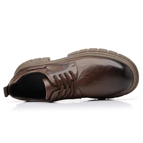 Men's Vintage Leather Lace Up Platform Oxfords Shoes Black Round Toe Soft Rubber Sole Non-Slip Waterproof Business Formal Derby Dress Shoes 7