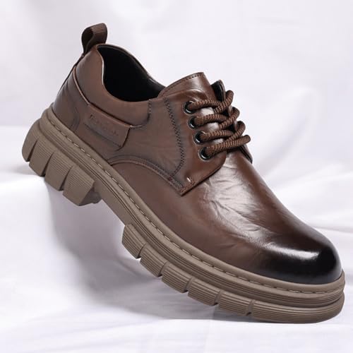 popular ! Men's Vintage Leather Lace Up Platform Oxfords Shoes Black Round Toe tender Rubber Sole Non-Slip Waterproof Business Formal Derby Dress Shoes