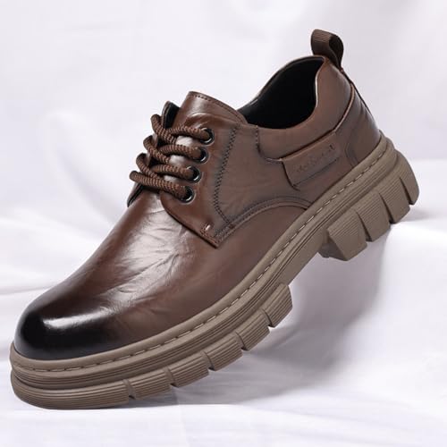 Men's Vintage Leather Lace Up Platform Oxfords Shoes Black Round Toe Soft Rubber Sole Non-Slip Waterproof Business Formal Derby Dress Shoes 6