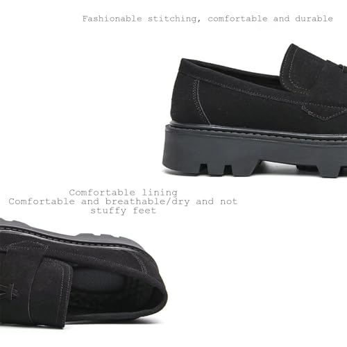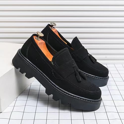 Men's Suede Tassel Platform Penny Loafers Retro Round Head Wide Toe Lug Sole Non-Slip Slip-On Formal Shoes Casual Business Loafers