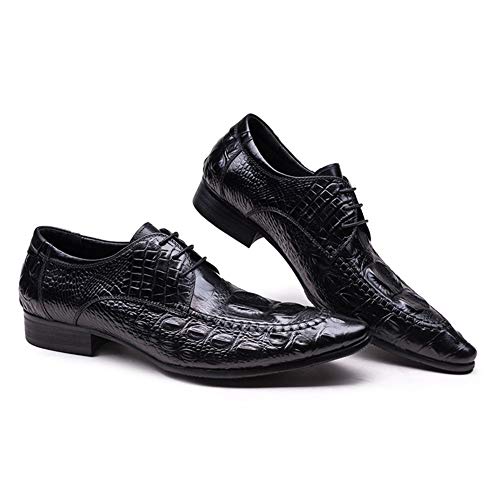 Business Oxford for Men Formal Shoes Lace Up StyleGenuine Leather Crocodile Texture Casual Retro Colors Pointed Toe Block Heel 1