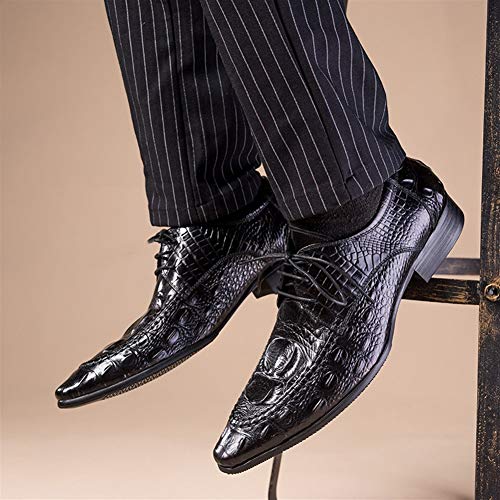 Business Oxford for Men Formal Shoes Lace Up StyleGenuine Leather Crocodile Texture Casual Retro Colors Pointed Toe Block Heel 2