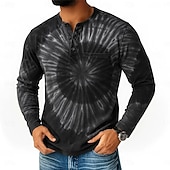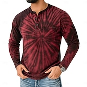 More information about Men's Tie Dye Vintage Henley Shirt T shirt Tee Long Sleeve Retro Vintage Casual Casual Spring Fall All Seasons Black Red Blue Purple Henley Henley T-Shirt