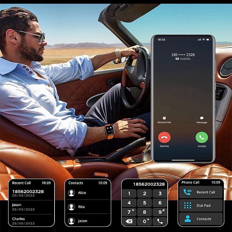 Smart Watch 1.95 inch Smartwatch Fitness Running Watch Bluetooth Pedometer Call Reminder Heart Rate Monitor Compatible with Android iOS Women Men Hands-Free Calls Media Control Message Reminder 10