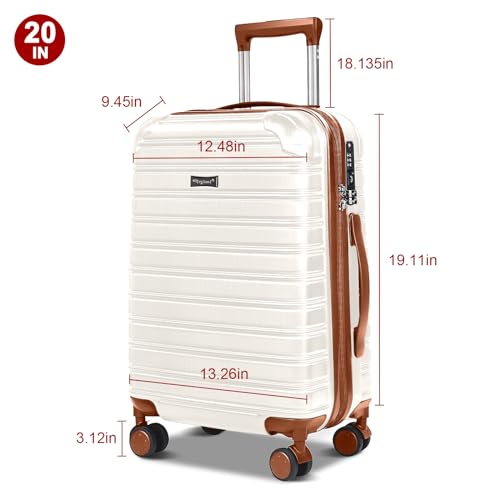 Hard Case Luggage 2 Piece Sets Carry On Luggage Lightweight With Spinner Wheels Rolling Suitcase 22x14x9 Airline Approved PC+ABS TSA Lock Hardshell Travel Carry On Hardside 14/20 Inch 2PCS,Beige 4