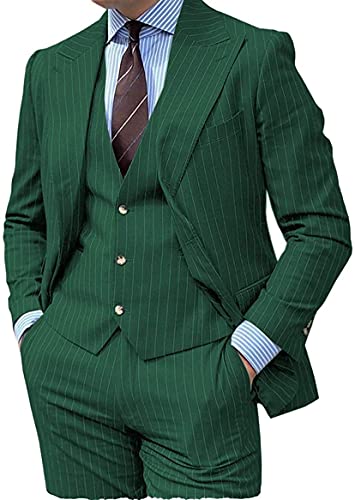 Mens Suit Slim Fit 3 Pieces Formal Pinstripe Suits One Button Wedding Groom Tuxedos 3