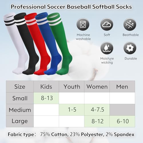Finerview Kids Soccer Socks Baseball Softball Socks, Knee High Stripes Arch Ankle Support Athletic Socks for Boys & Girls 5