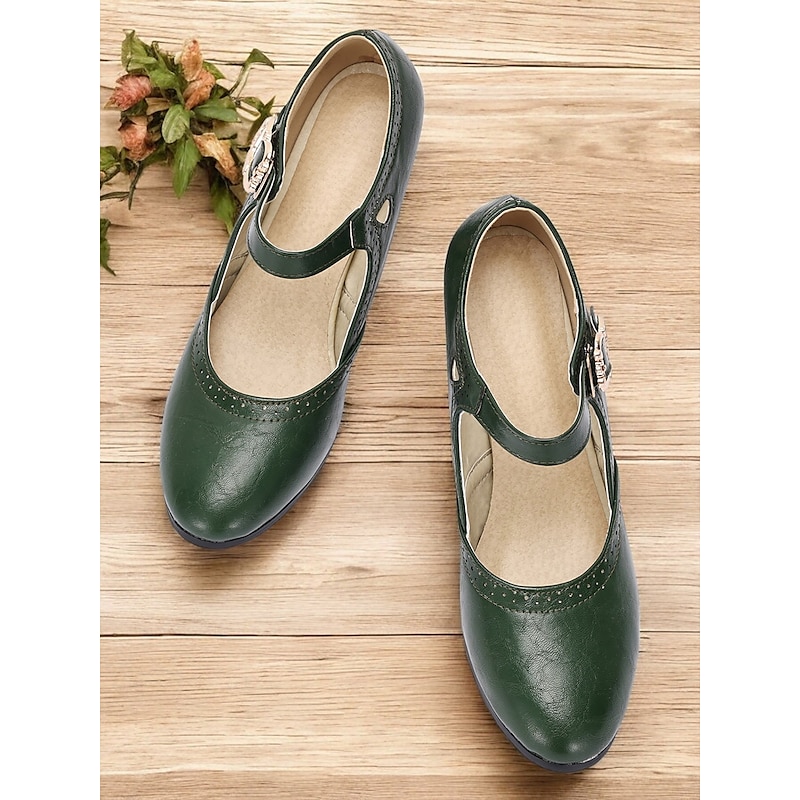 HOT ! Women's Vintage Gatsby Green faux Leather Mary Jane Pumps for Mid-Heel Dress Shoes with Brogue Detailing and Buckle Strap, Ideal for Office, Formal Events, and Retro Style Outfits