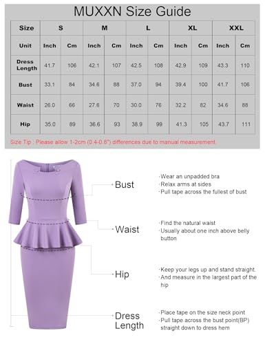 MUXXN Women's 50s Vintage Bodycon 3/4 Sleeve Midi Peplum Business Formal Work Pencil Dresses