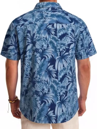 ALLOVIN Premium Linen & Tencel Mens Tropical Hawaiian Shirt Loose Fit Floral Button Down for Summer Beach & Holiday Party 6