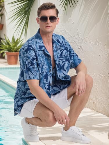 ALLOVIN Premium Linen & Tencel Mens Tropical Hawaiian Shirt Loose Fit Floral Button Down for Summer Beach & Holiday Party 1