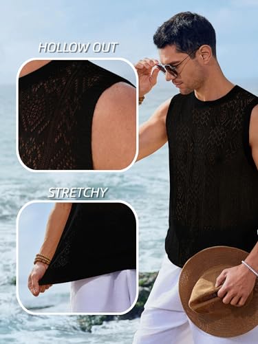 • Features: Casual tank top for men, hollow out, see through, sleeveless, crewneck, rib knit, slim fit, solid color, brings out your personality and charming