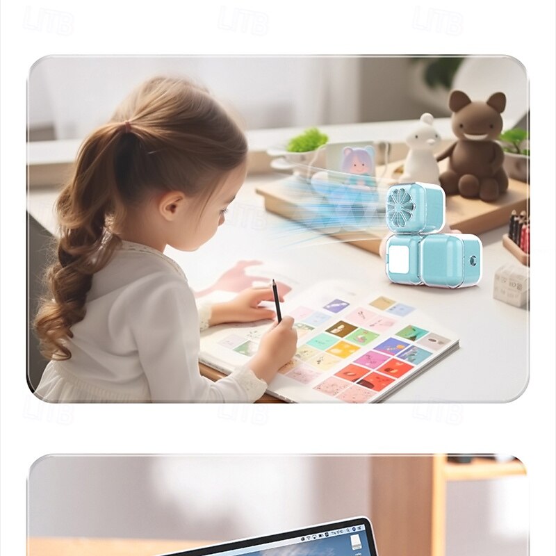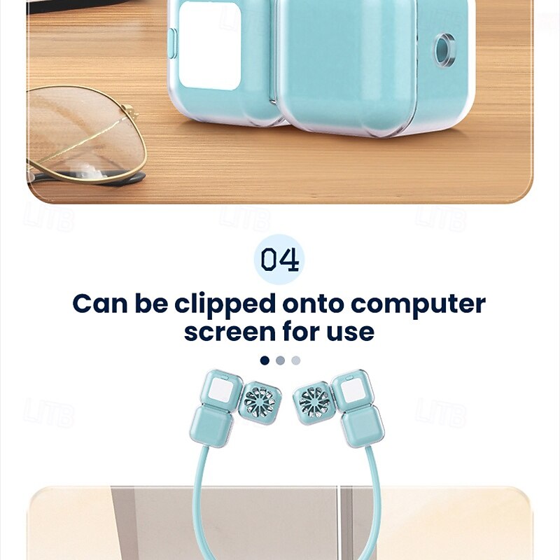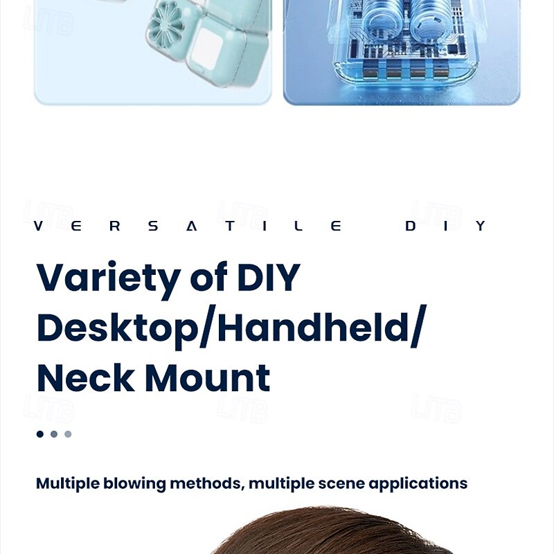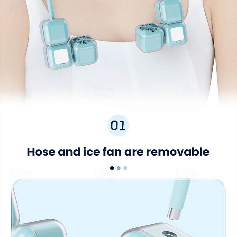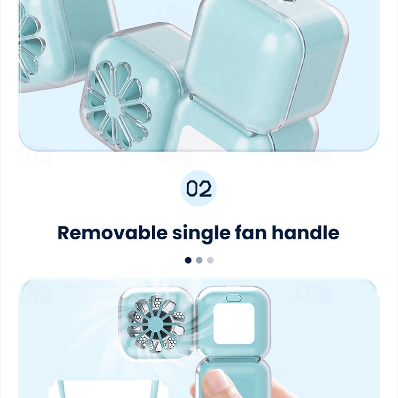 1 Pc new ice cube shaped fan with light hanging neck DIY detachable desktop handheld hanging neck three in one 180 degree rotation adjustable wind, long-lasting battery life 11