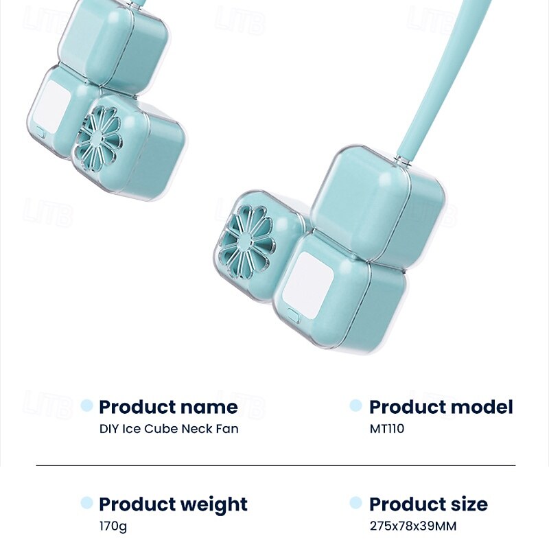 More information about 1 Pc new ice cube shaped fan with light hanging neck DIY detachable desktop handheld hanging neck three in one 180 degree rotation adjustable wind, long-lasting battery life