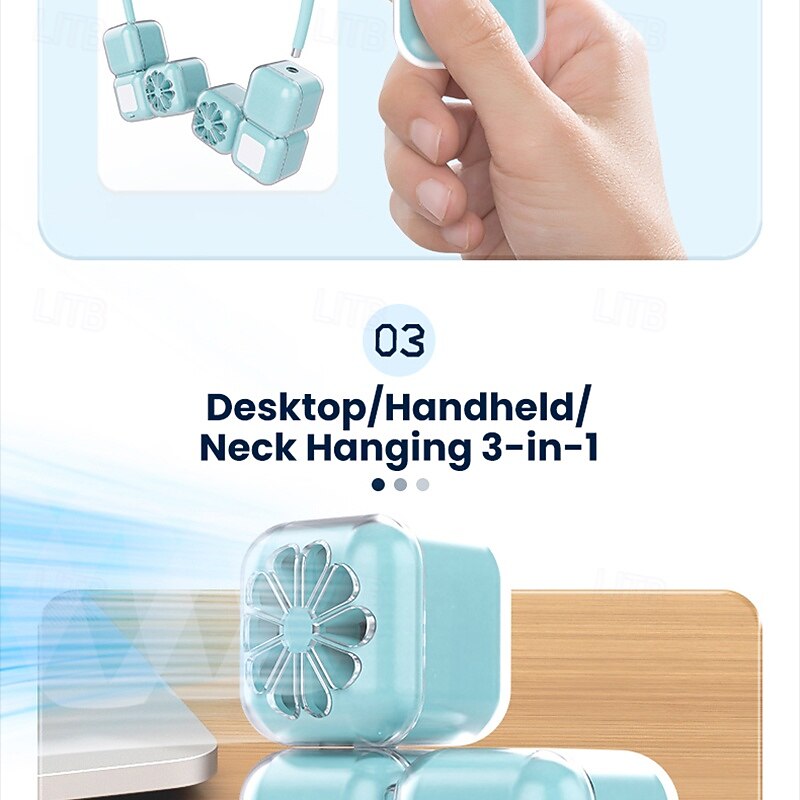 1 Pc new ice cube shaped fan with light hanging neck DIY detachable desktop handheld hanging neck three in one 180 degree rotation adjustable wind, long-lasting battery life 31