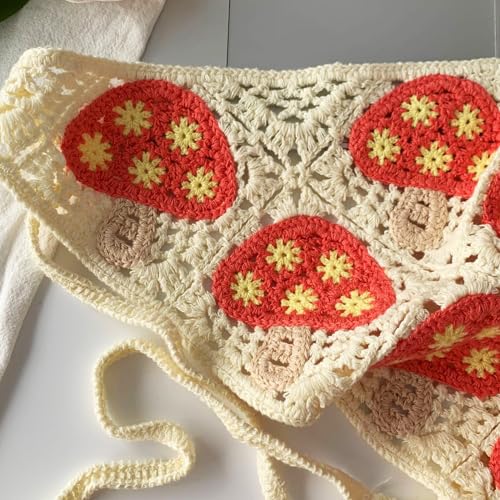 More information about Knits Mushroom Triangles Hair Scarf Crochet Hair Kerchief Tie Back Mushroom Pattern Elegant Turban For Girl Photo Tool Knitte