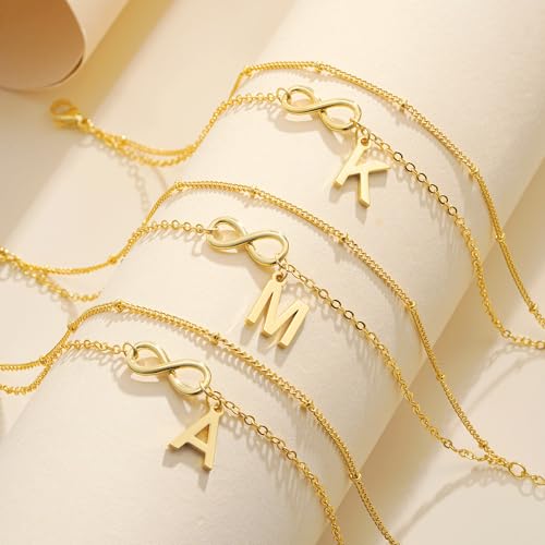 Gold Initial Bracelets for Women Girls - 18K Gold Plated Infinity Bracelet Dainty Gold Bracelets for Women Teen Girl Gifts Trendy Stuff Birthday Gifts