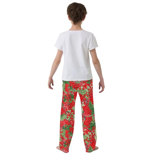 HOT ! Boys' Pants Viburnum Rowan Red Berry Long Bottoms Jogger Pants Elastic Waist Trousers with Pockets S-XL