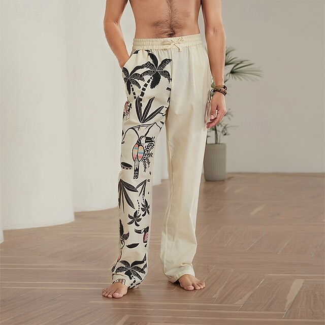 More information about Men's Coconut Tree Graphic Prints Linen Pants Trousers Summer Pants Mid Waist Streetwear Hawaiian Designer Casual Daily Holiday Drawstring Elastic Waist 3D Print Spring & Summer 3D Print Blue Khaki