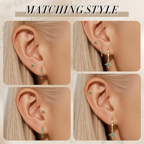 Material: SilverMetal type: Sterling SilverBack Finding: Hinged HoopEarring design: HoopGem type: Cubic ZirconiaItem type name: Hoop Earrings3 Pairs Earrings Set: These green gold hoop earrings contain 3 pairs of earrings, 1 pair of gold star dangle earrings, 1 pair of cz hoop earrings and 1 pair of star studs. They are the right size, small and delicate, but striking enough to fit every woman perfectlyEmerald Earrings Materials: Delicate hoop earrings are made of brass plated with 14k gold, 925 sterling silver ear posts and 5A cubic zirconia. All of earrings for women trendy are lead-free, nickel-free and hypoallergenic. Both glamorous and reassuring for womenBest Gift for Women: These gold plated earrings are beautifully packaged and make a great gift for mom, sister, family, friends or classmates. The huggie hoop earrings set also makes a lovely gift for Mother's Day, Valentine's Day, Birthdays, Parties, Anniversaries, Weddings, Christmas or any holidayStar Earrings Tips: These meticulously crafted cartilage earrings for women redefine elegance for an unparalleled wearable experience for every occasion. Flexible clasps are easy to open and close. If these hypoallergenic earrings grommets do not close easily, you can adjust the ear clipsWhy Choose Us: Angelady Jewelry is committed to providing original jewelry. If you have any questions about the gold earrings set, please feel free to contact us Perfect for everyday use. excellent materials and excellent craftsmanship ensure long-lasting durability.
