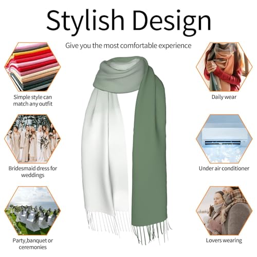 HOT ! Sage Green Watercolor Ombre Imitation Cashmere Tassel Scarf Winter Scarf Autumn Softest Classic Warm