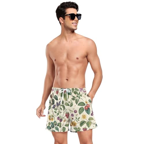 HOT ! xigua Wild Berries and Flowers Mens Swim Trunks with Liner, 5 inch Quick Dry Mens Boardshorts for Beach
