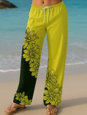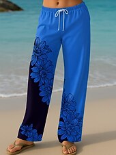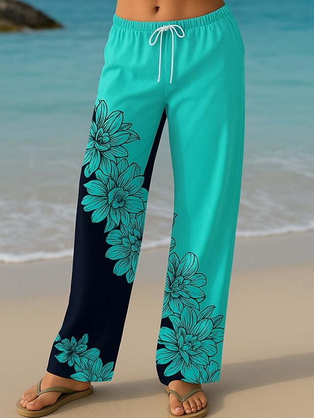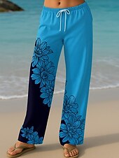 More information about Women's Culottes Wide Leg Vacation Vintage Ethnic Style Long High Waist Floral Graphic Quick Dry Breathability Soft Inelastic Formal Outdoor Vacation Lake blue Yellow Blue Green Summer Spring